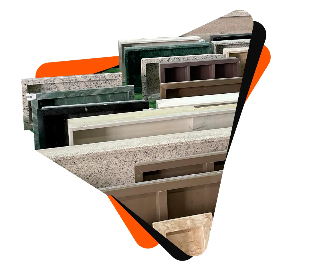 Soleiras, pias, cubas esculpidas, peitoris, tampos, nichos prontos e muito mais é no Outlet do Mármore.